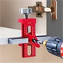 A sablon használata egyszerű és intuitív. Először állítsd be a kívánt magasságot a kétirányú skála segítségével. Ezután használd a szekrényajtó megtartására a csúszásgátló párnák segítségével. A beépített fúróvezető lehetővé teszi a pontos lyukak fúrását a csillapítók számára.